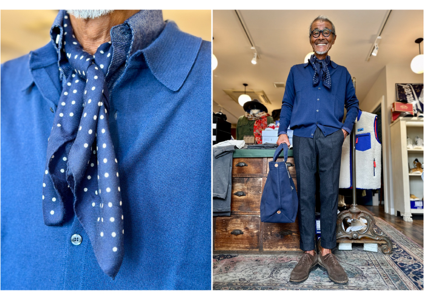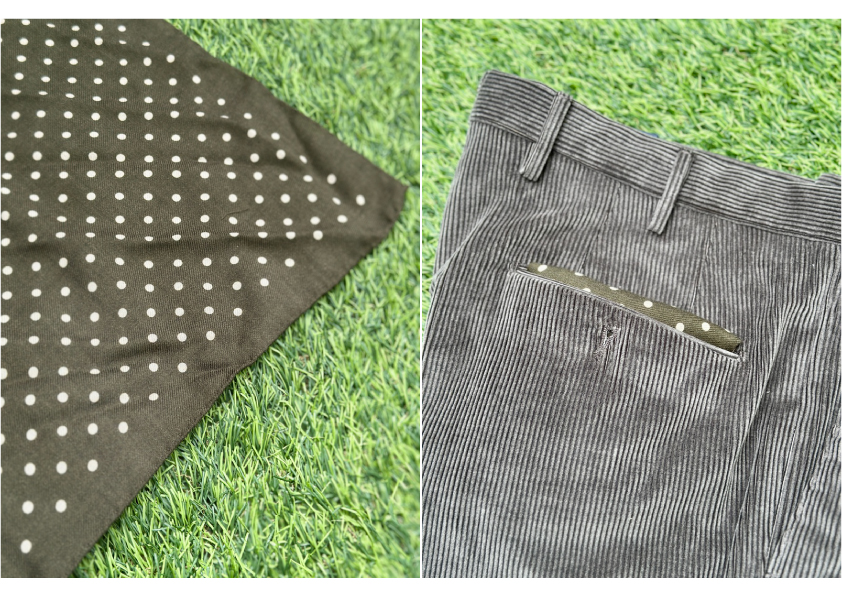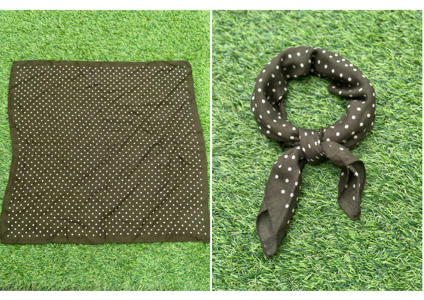 今回はカジュアルにも合わせて頂けるドット柄になりお色も