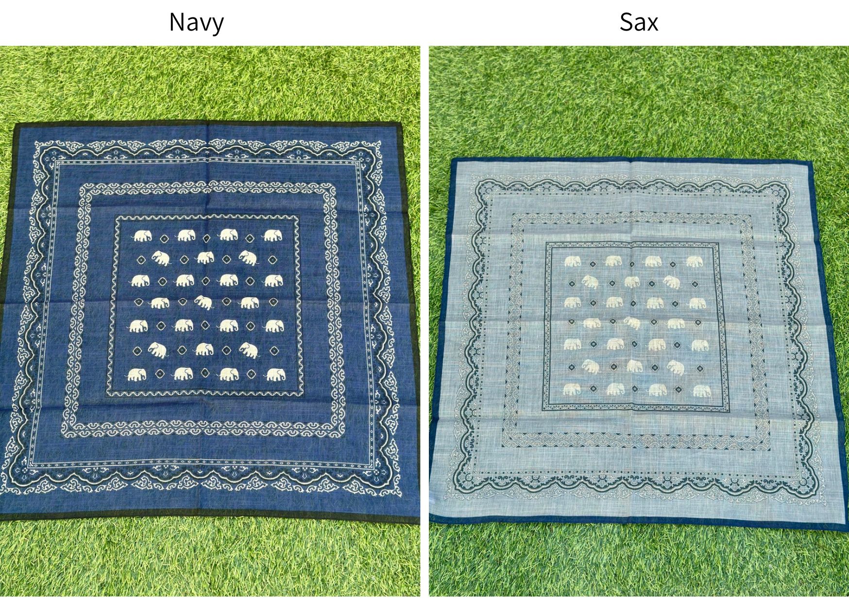 Elephant Bandanaの象が中央に集まっているスカーフになります。