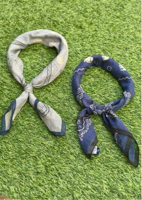 大きさもバンダナより1回り大きい65cmの正方形なので、何方でも首に巻いて頂けます。