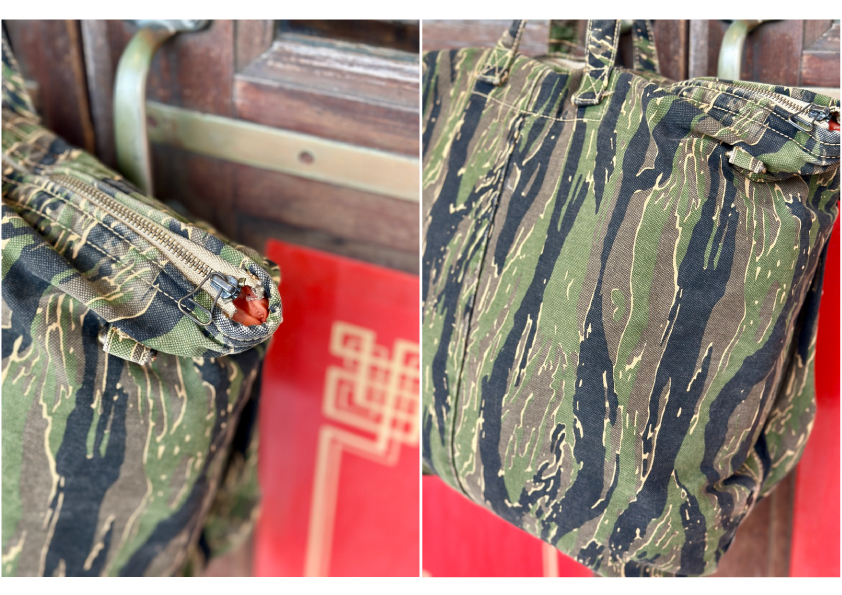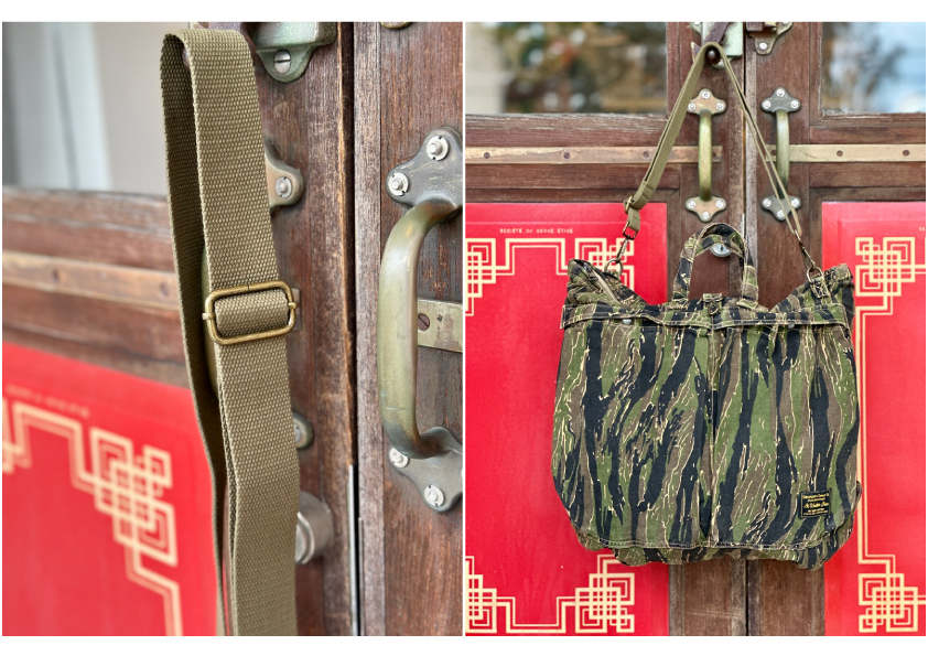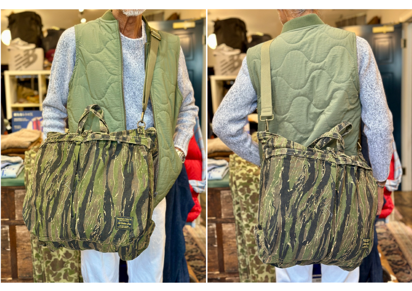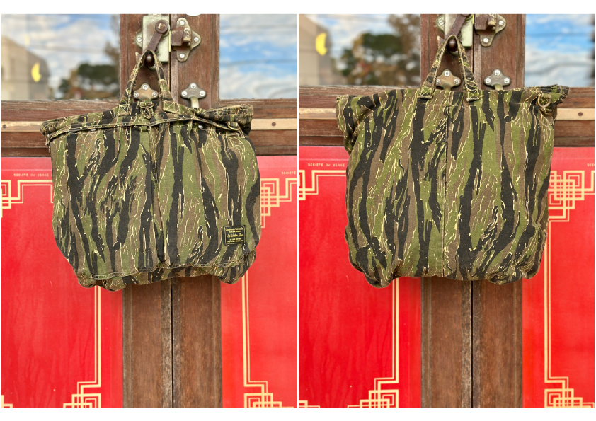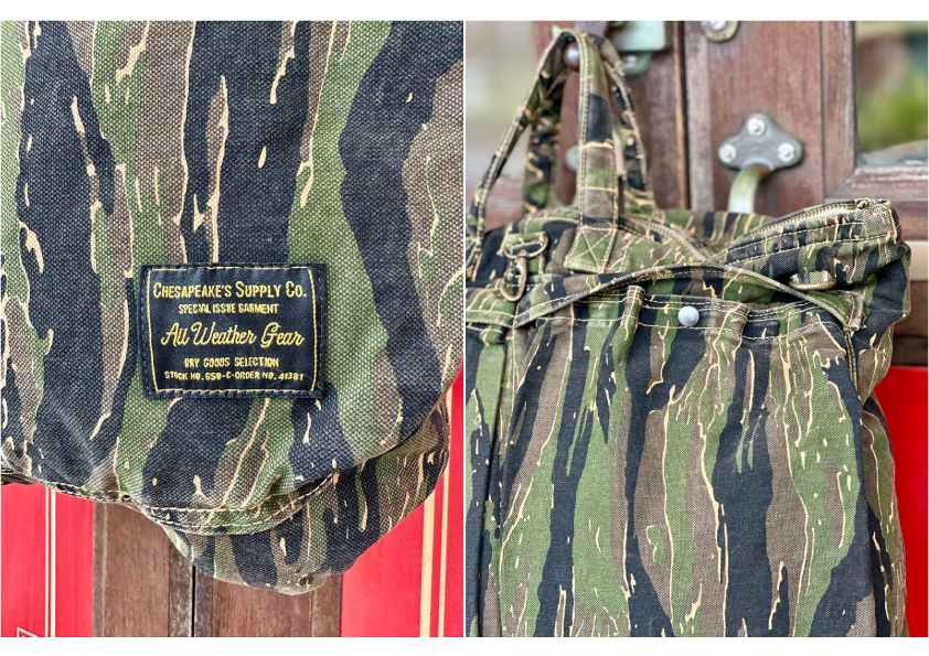 お使い頂ける男臭い雰囲気あるCHESAPEAKE’S Cotton Canvas Tiger Stripes HELMET BAGです。