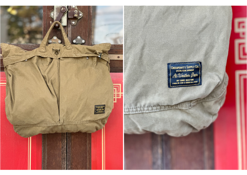 We have received a new HELMET BAG from CHESAPEAKE'S, made from cotton canvas fabric with a hard wash finish for a masculine look.