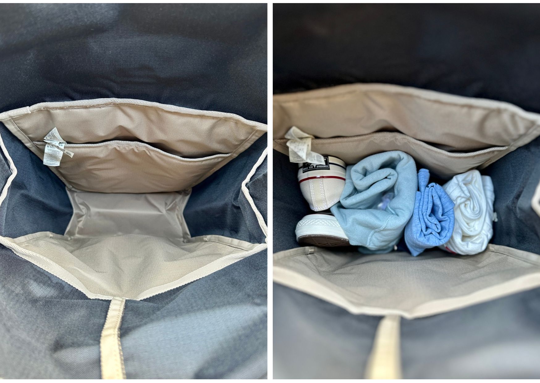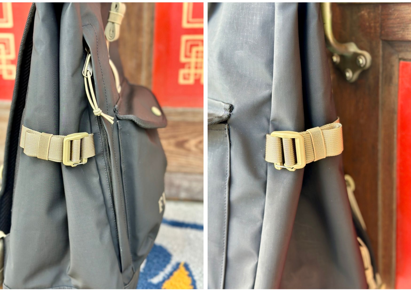 小物の出し入れもスムーズですし、両サイドにあるコンプレッションストラップが
