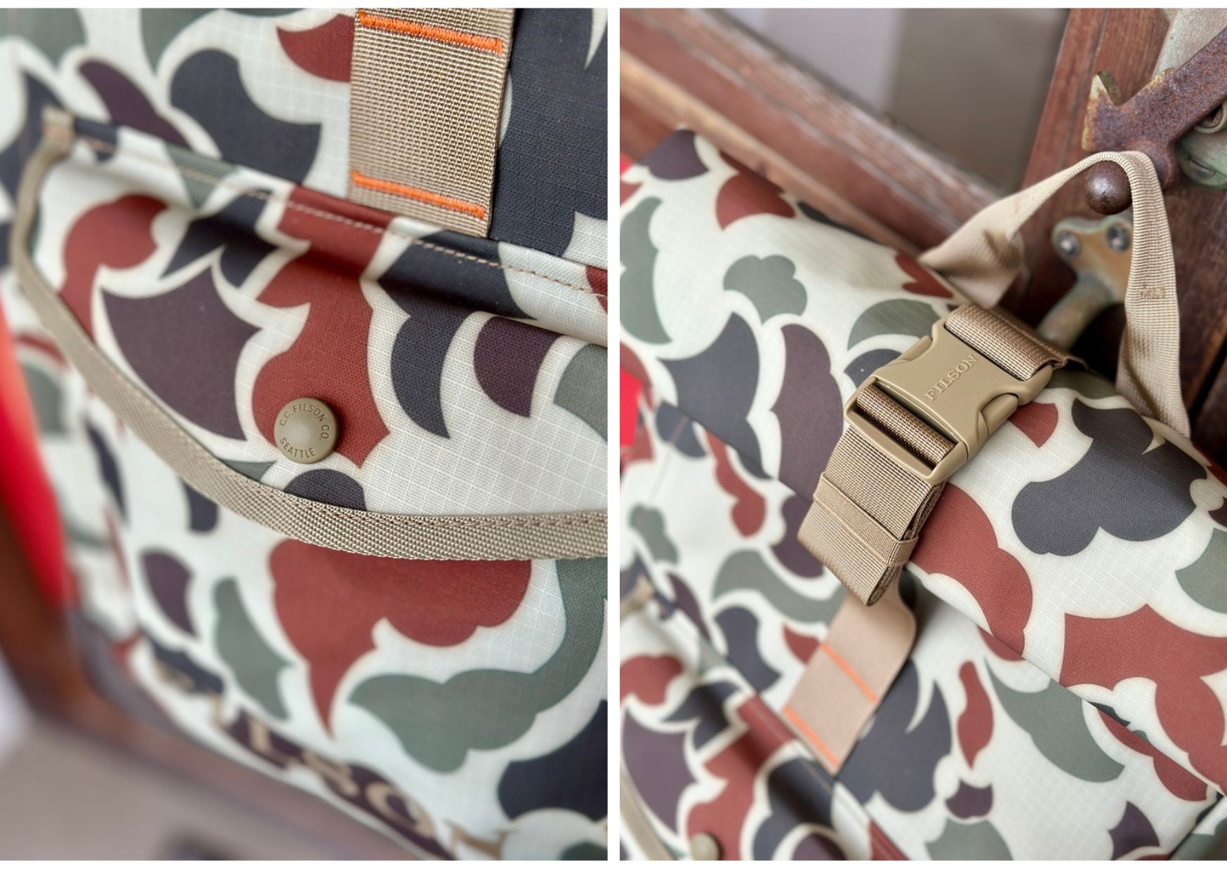 FILSONらしい強度もありながらも内部に水が浸透しないバックになります。