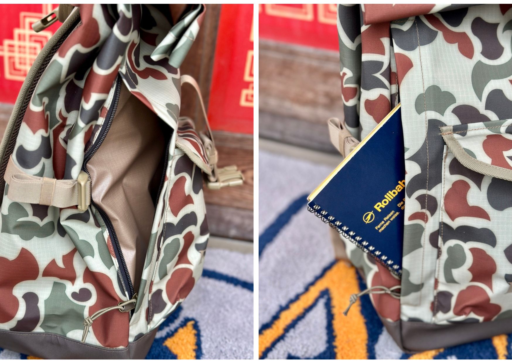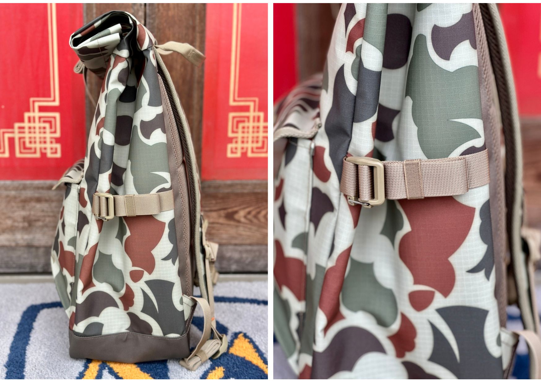 小物の出し入れもスムーズですし、両サイドにあるコンプレッションストラップが