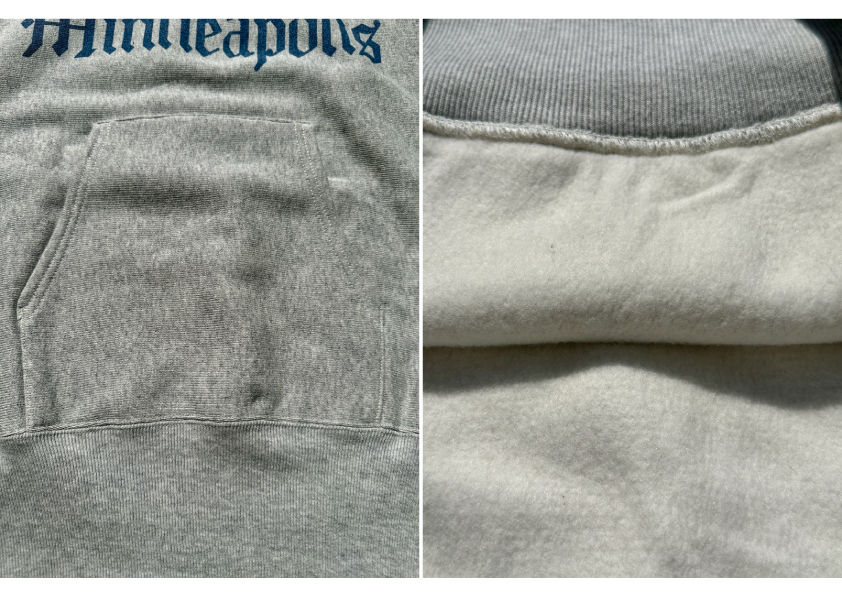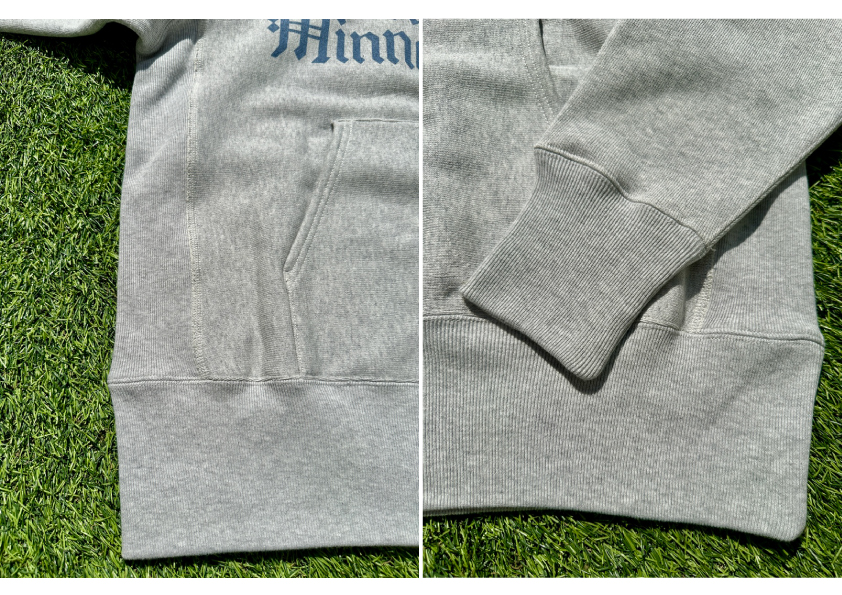 ディテールもReverse Weave製法で生地の縮みを軽減する仕組みになっており