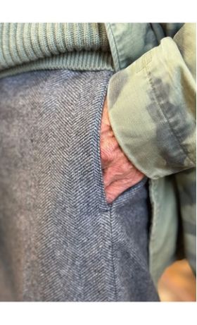 ヘリンボーンの織りも少し大きめな織りになり、男臭い雰囲気に仕上がっており