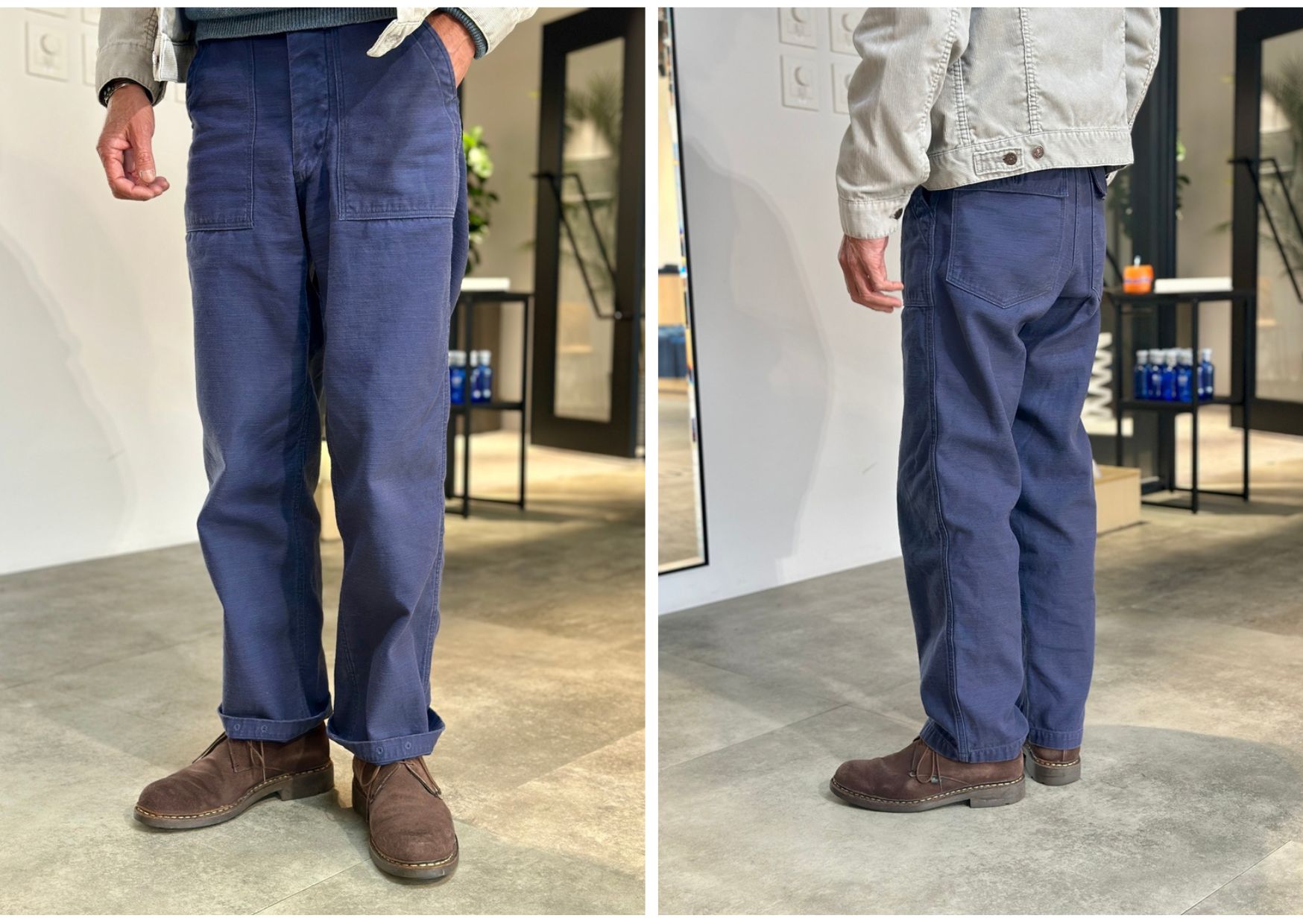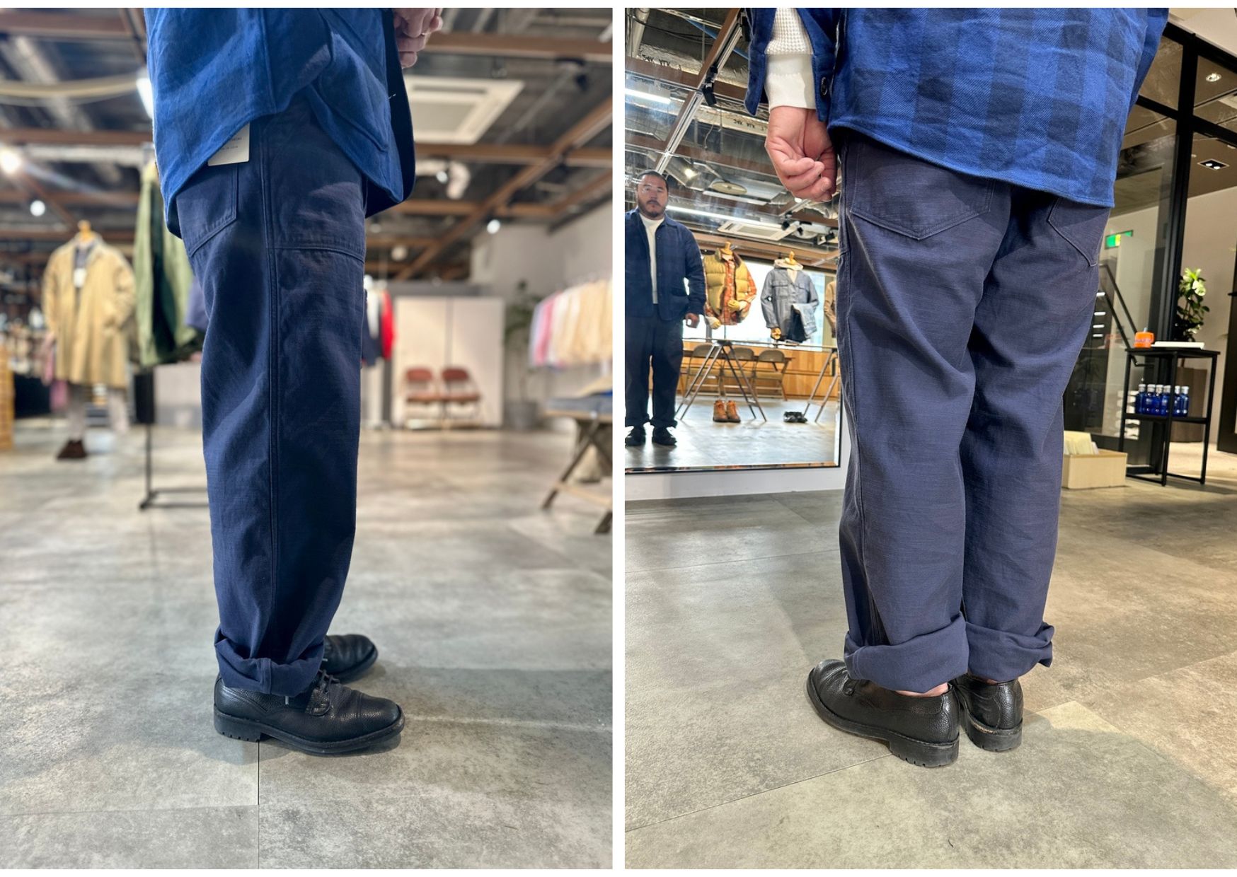 サイズ感もジャストサイズで穿いて頂いても良いですし、少し大きめで穿いて頂いても雰囲気があります。
