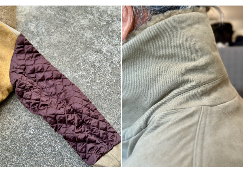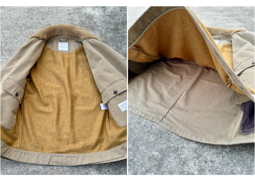 裏地にはMoon社のヘリテージラインの生地を贅沢に使用し袖部分には中綿入りの