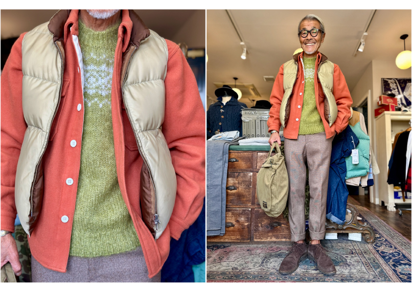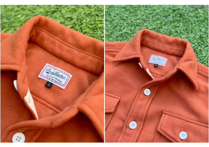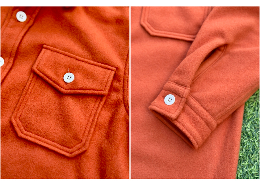 着心地も非常に良く軽くて保温性のあるLe meilleur Wool Mosser Orange CPO Jacketです。