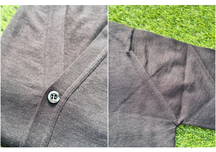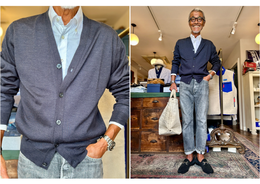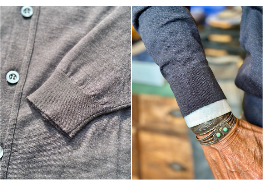 All the details are knitted separately and then hand-linked to create natural elasticity. Once completed, the garments are washed, dried, pressed, and then carefully hand-finished one by one by artisans through 35 steps, including labeling and buttoning. It takes about a year from raw materials to completion.