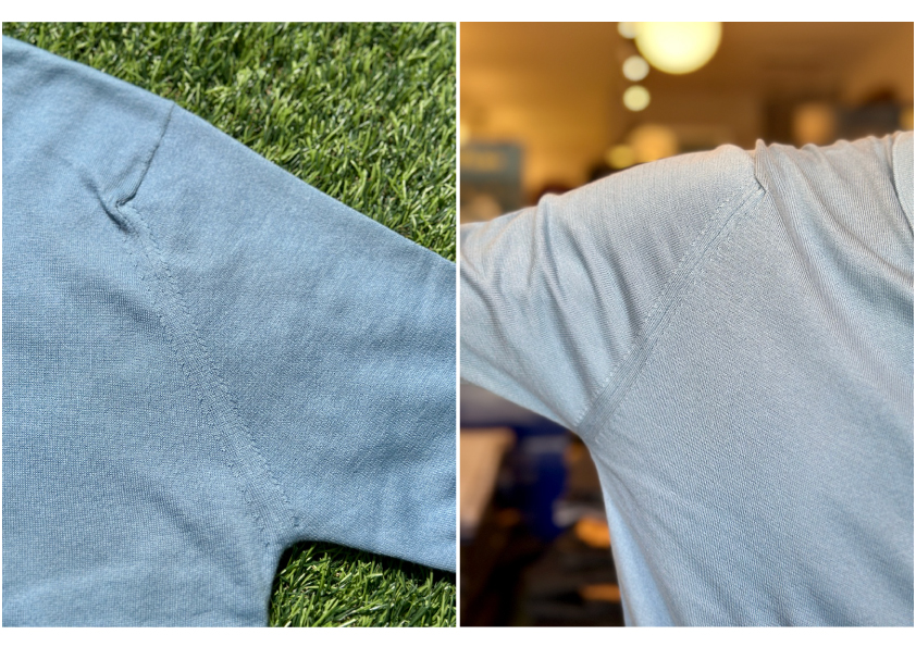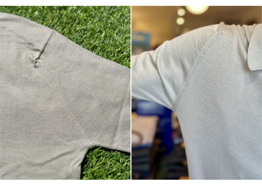 袖付も職人さんがハンドリンキング仕様でツッパリ感も無く着用して頂けます。