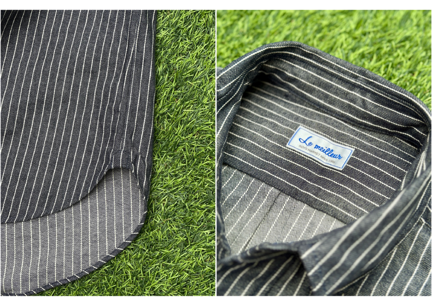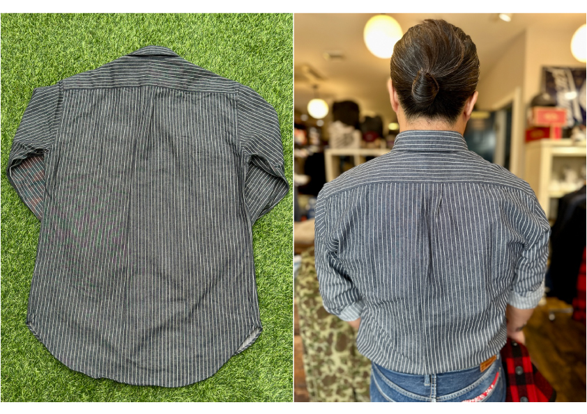 色もベーシックなヒッコリー生地のダークネイビーにホワイトの細いピッチになり