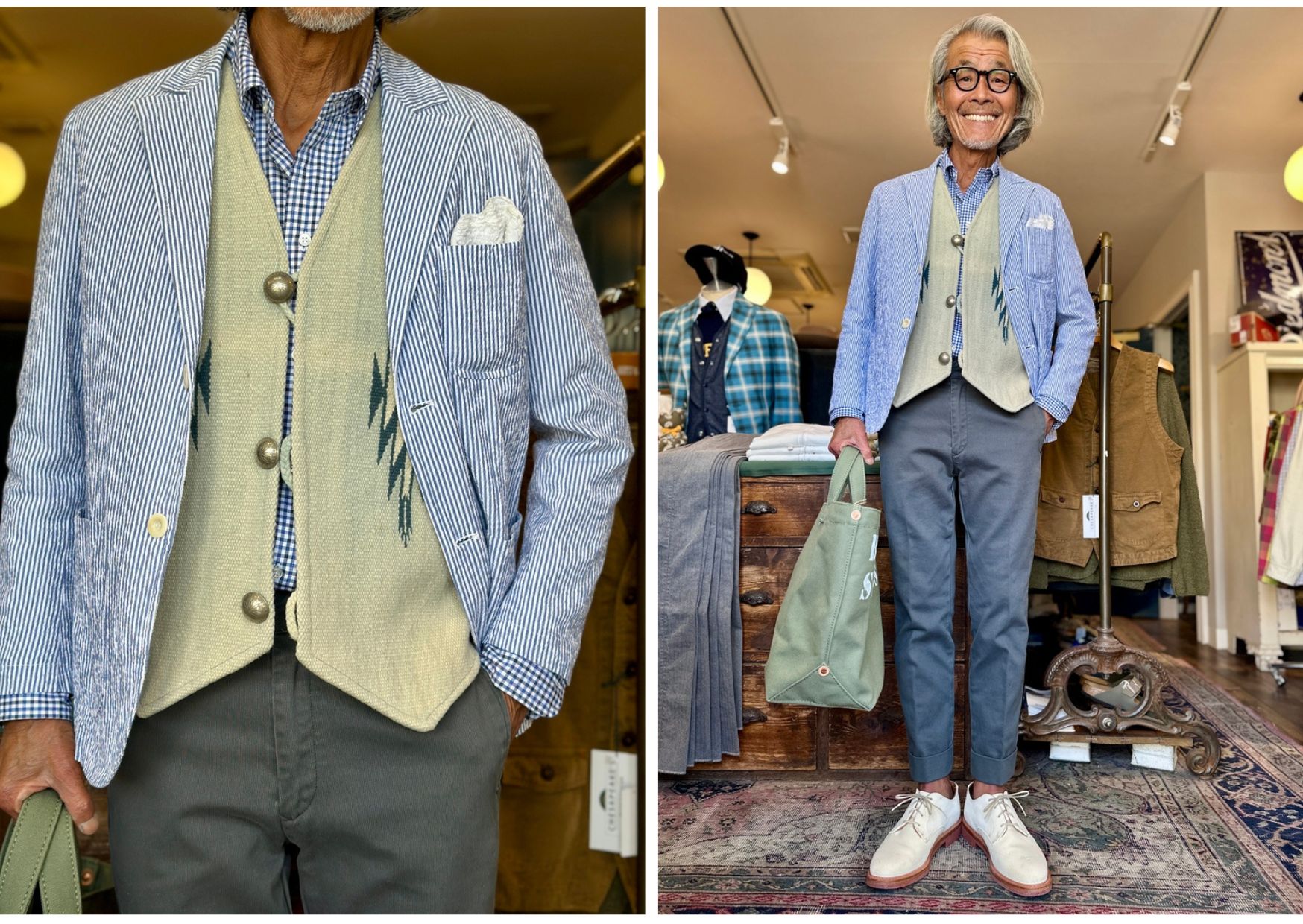 ディテールも袖から脇またアームホールを折り伏せ縫いにする事によって上品な雰囲気になり