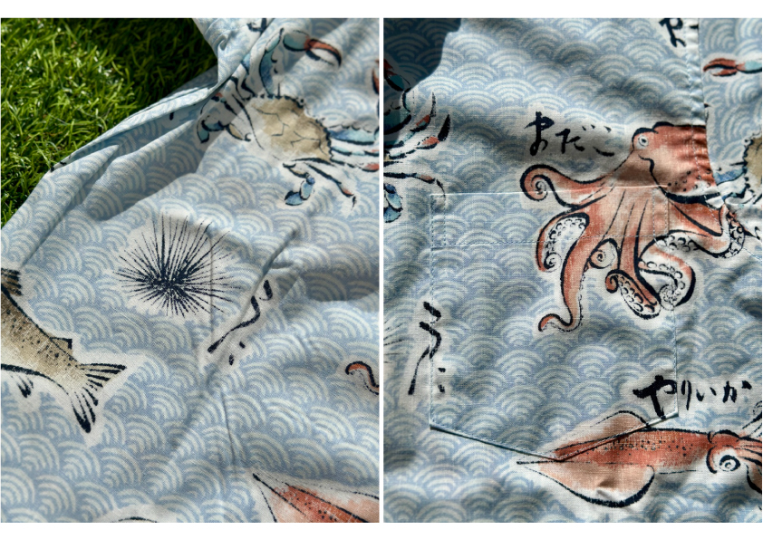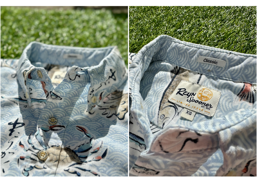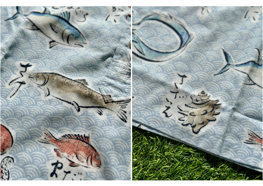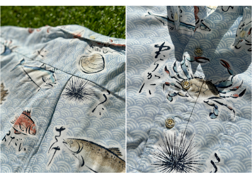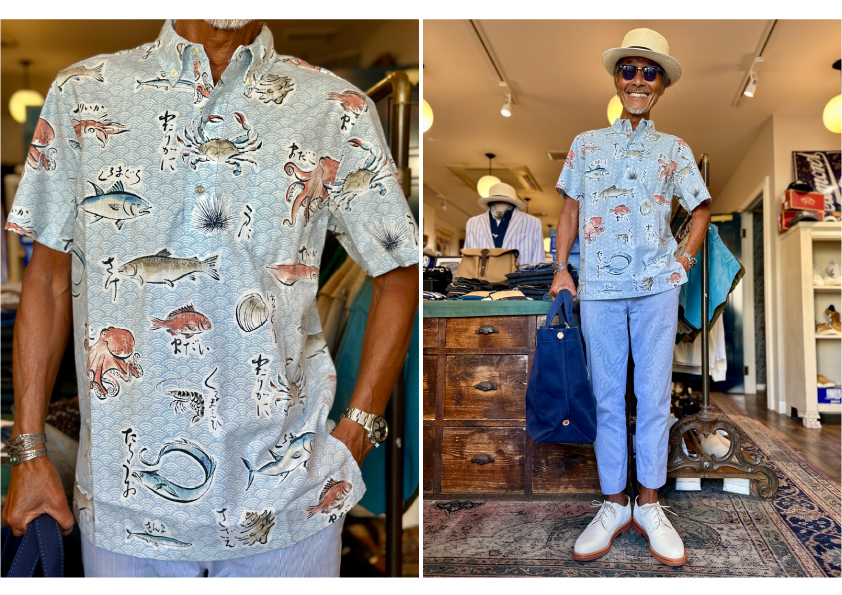 The fabric is the familiar REYN SPOONER Spooner cloth, which is 55% cotton and 45% polyester, making it perfect for Japan's humid climate.