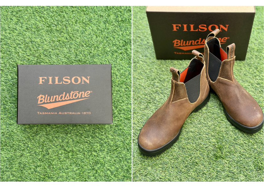 国境を超えて現実化したFILSON×BLUNDSTONE COLLABORATION Premium waxed suede leatherです。