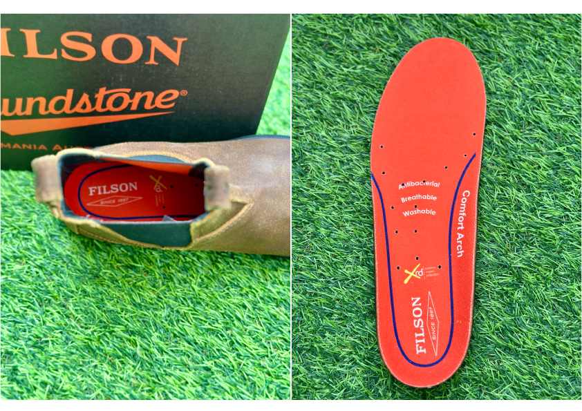 アッパーにはFILSONらしいオイルとワックスを染み込ませたスウェードレザーを使用し